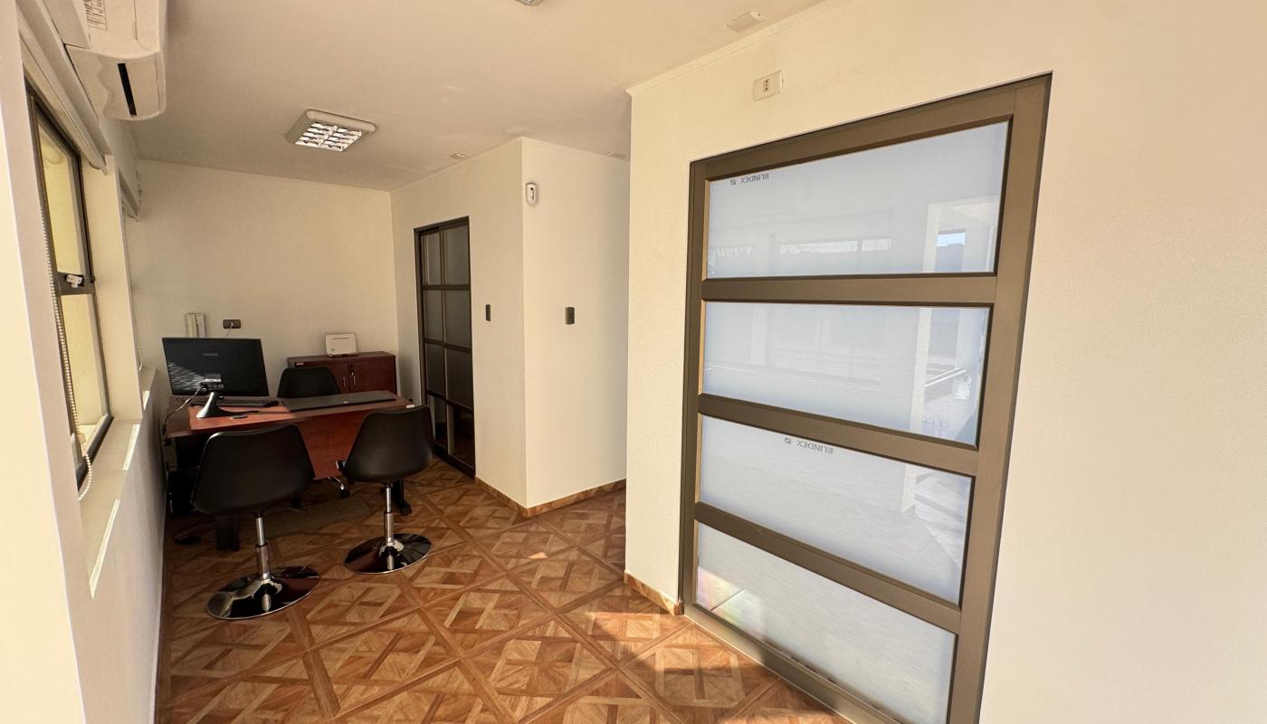 Descripción: Propiedad comercial para uso de oficina o centro medico 1 piso Amplia recepción 1 privado con baño 2 piso Hall de distribución Sala de reunión 2 oficinas 1 baño Se arrienda con el amoblado existente, además tiene un amplio patio, bodega, estacionamiento interior para 3 vehículos y exterior para 3 mas. - Cortinas metálicas, 160 mts construidos y 500 mts superficie